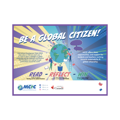 MCIC encourages schools and public libraries across the province to showcase books that promote global citizenship! In February (2026), students can win a pizza party for their classroom and school libraries can win books. Mark your calendar!