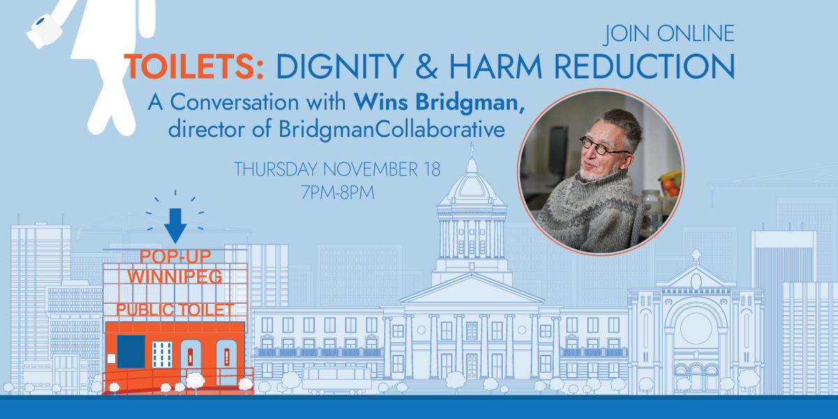 Join us on November 18th for a virtual conversation with Wins Bridgman! Bridgman is a leader in public washroom design and has advocated for accessible and inclusive public washrooms in Winnipeg and across Canada. Learn about the importance of public toilet access and how these safe spaces lead to socially inclusive societies.